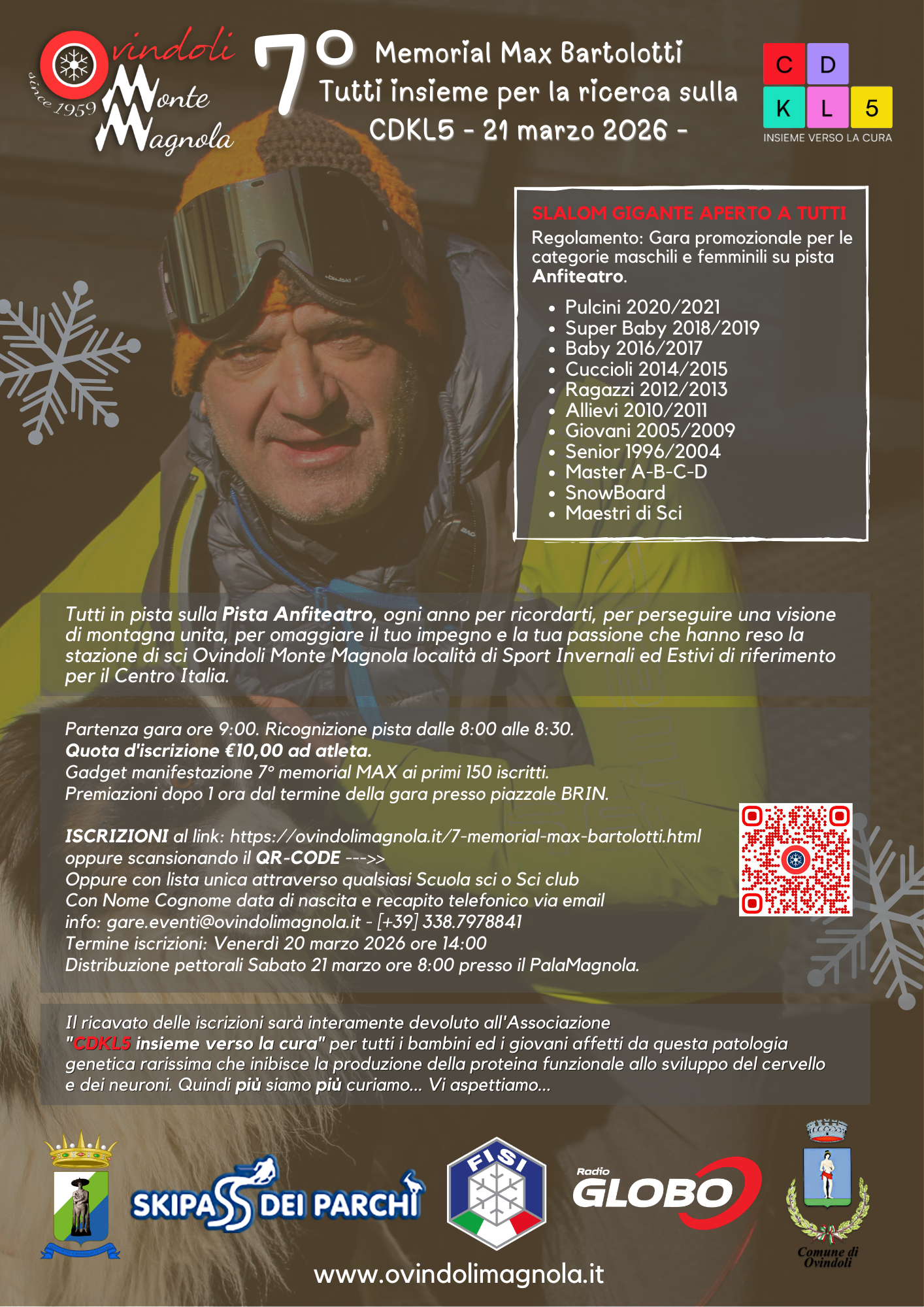 Quota d'iscrizione €10,00. Gadget manifestazione 7 memorial MAX ai primi 150 iscritti.